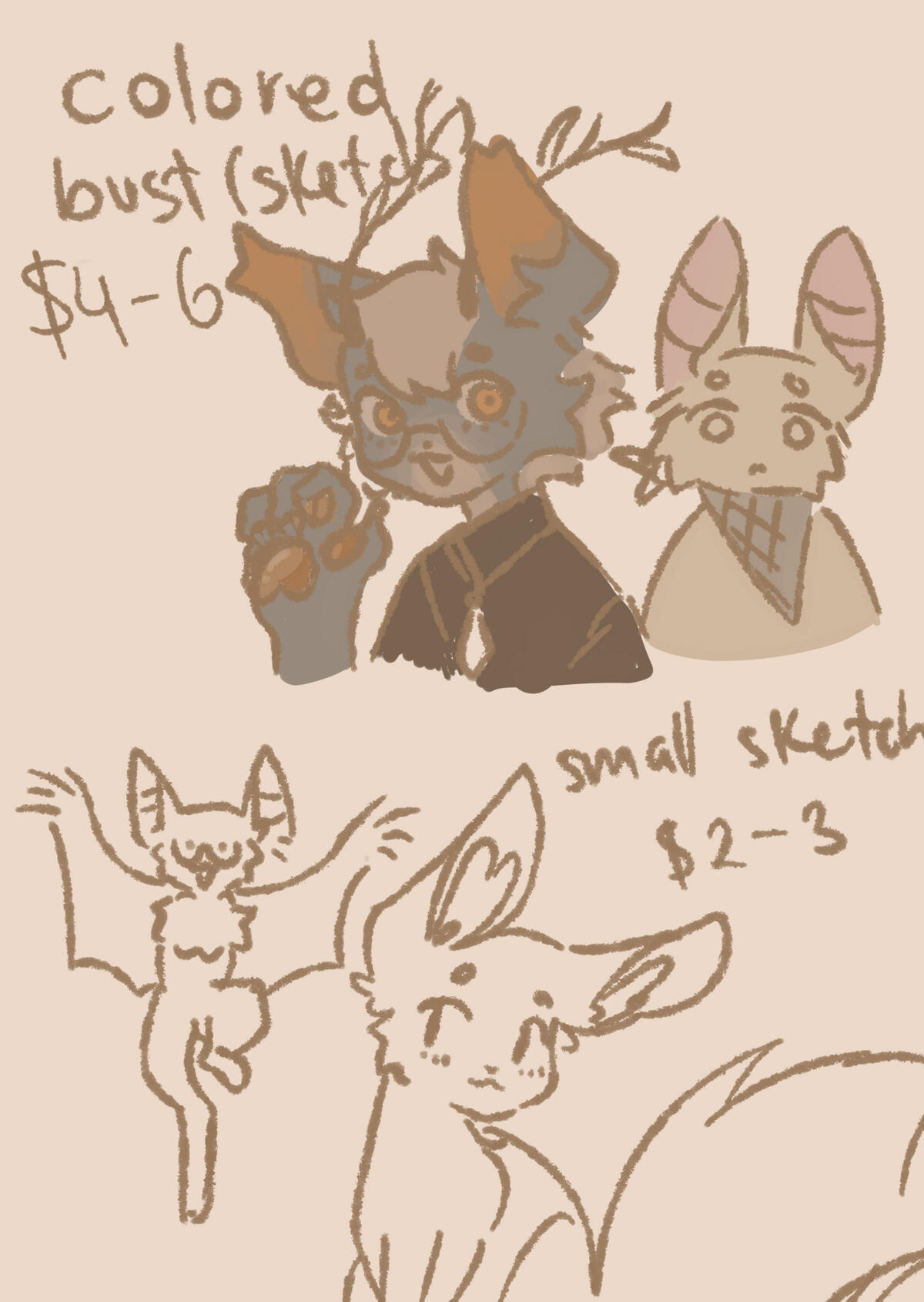 Doodle page: $7 - $10 Includes multiple headshot, bust and maybe a halfbody